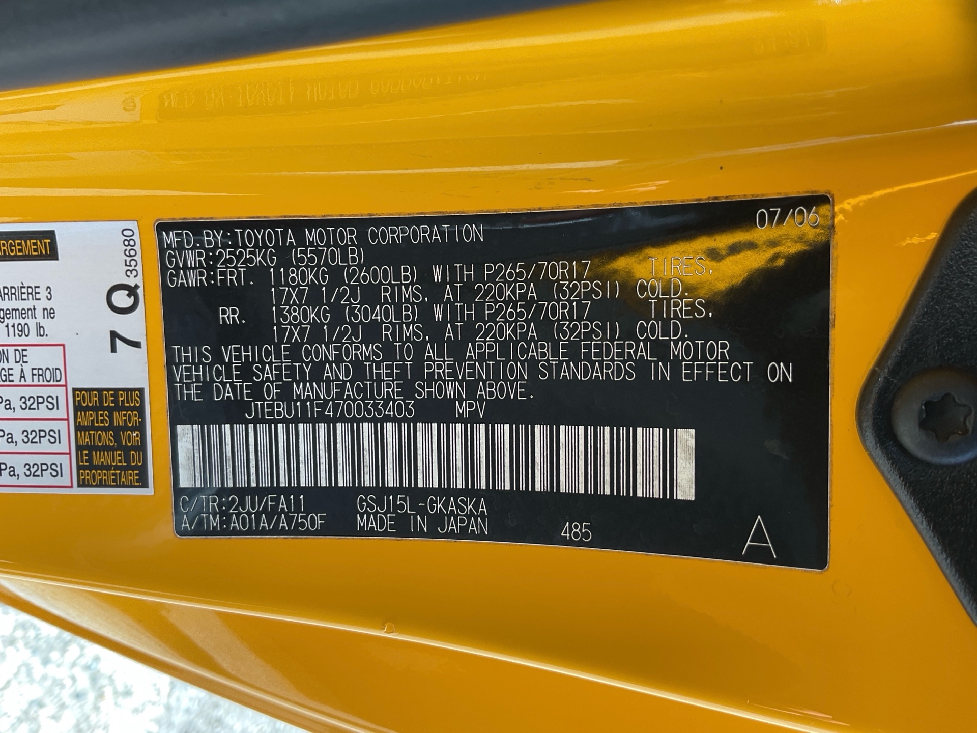 VIN: JTEBU11F470033403