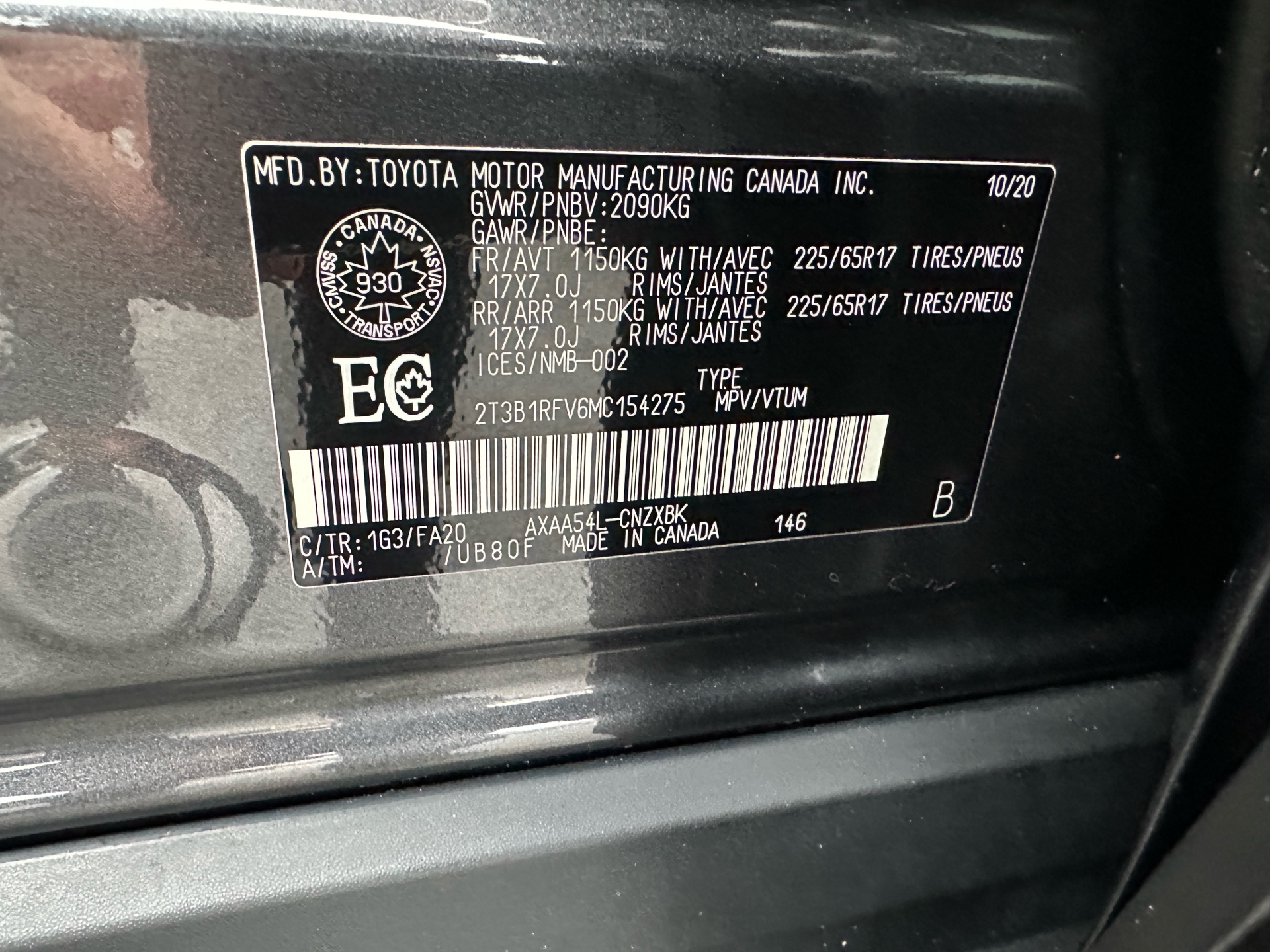 VIN: 2T3B1RFV6MC154275
