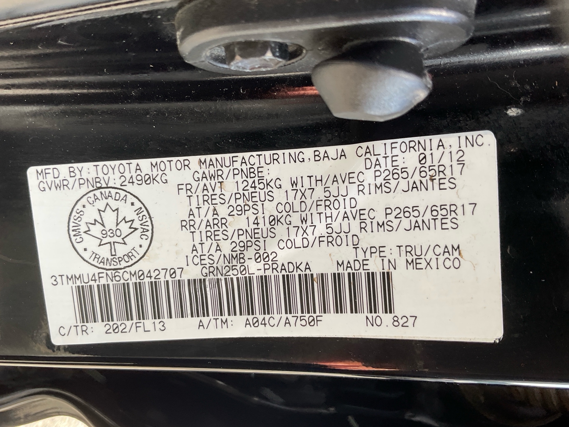 VIN: 3TMMU4FN6CM042707